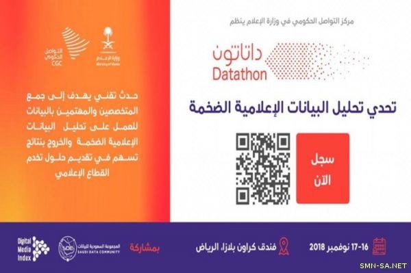 الشبكة الإعلامية السعودية يطلق مركز التواصل الحكومي بوزارة الإعلام بعد غد فعالية داتاثون "DATATHON" لتحليل البيانات الإعلامية الضخمة، وذلك بفندق كراون بلازا بالرياض .