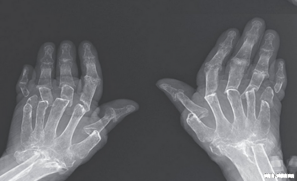 وأدت الحالة النادرة إلى فقدان العظام للترابط في يد المرأة البالغة من العمر 69 عاما، وهي حالة تعرف باسم "التهاب المفصل الجادع" (telescoping fingers). ويقدر أن ما بين 3.7% و6.7% من الأشخاص المصابين بحالة التهابية تعرف باسم "التهاب المفاصل الصدفية"، يصابون بحالة "الأصابع المتداخلة" المعروفة باسم "التهاب المفصل الجادع"، وفقا لتقرير صدر عام 2013 في مجلة Reumatología Clínica، وتحدث هذه الحالة أيضا عند الأشخاص المصابين بالتهاب المفاصل الروماتويدي، ولكن في حالات نادرة للغاية.